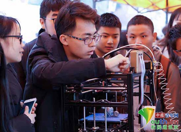 此次樱花节上的模型打印便是3D协会在3D打印领域上的一次尝试。早在两周前,3D协会就开始筹备此次樱花节的展出模型。会长张佳林表示:“只有把三维模型由数据化转化为实体,才能发挥学习专业软件的功能性。”张佳林及其余成员分工协作,一部分人在网上搜索模型,另一部分的人操作打印机打印模型,陆续完成了30多个模型的打印工作。