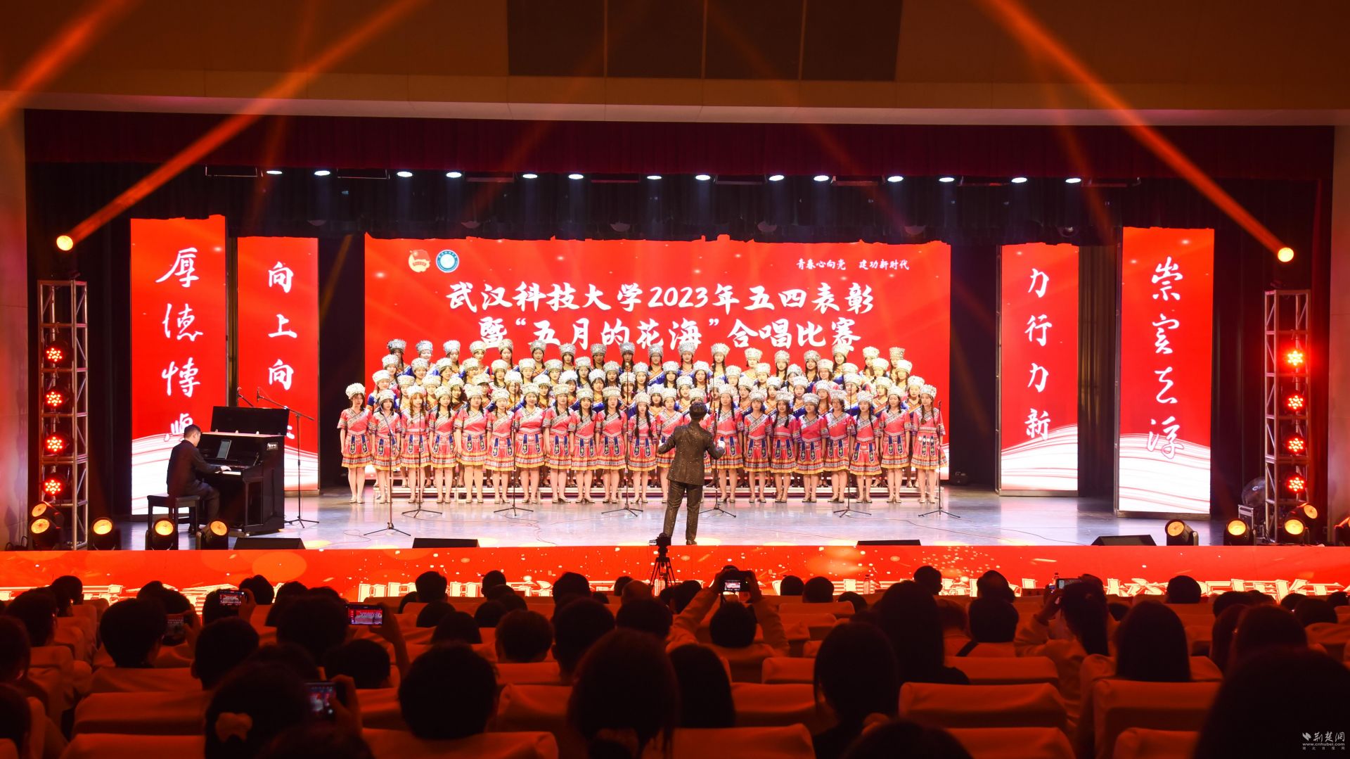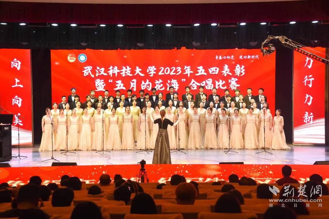 荆楚网(湖北日报网)讯(记者林杉 通讯员张虎琛 刘睿萱 摄影叶显伟)“我们在灿烂阳光下,跟着共产党建设大中国”……为发扬五四精神,纪念五四运动104周年,5月4日,js33333线路登录在黄家湖校区沁湖礼堂举办“五月的花海”合唱比赛。千余名师生传唱红色歌曲,歌颂五四精神,追溯党的红色历程。