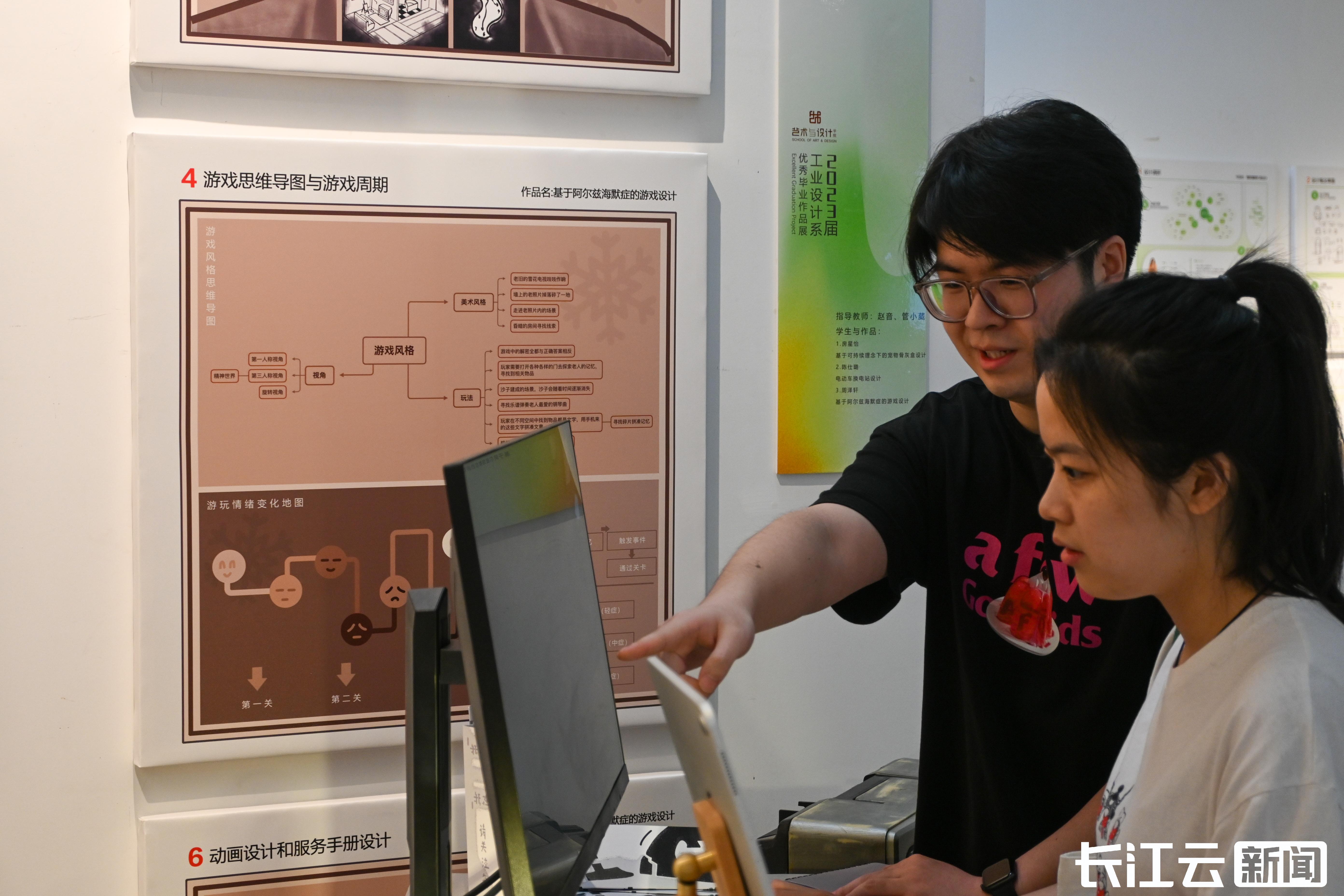 针对参观者关心的问题,创作者环境设计专业的何佳语表示,作品运用了专业内的“数字孪生”和“城市触媒”理论,结合人类的“五感”,打造出了适应儿童、中青年、老年人、弱势群体等多方群体的生存、归属、成长三级需求的城市感知地图,作品的初衷是希望能让更多的人关注弱势群体。