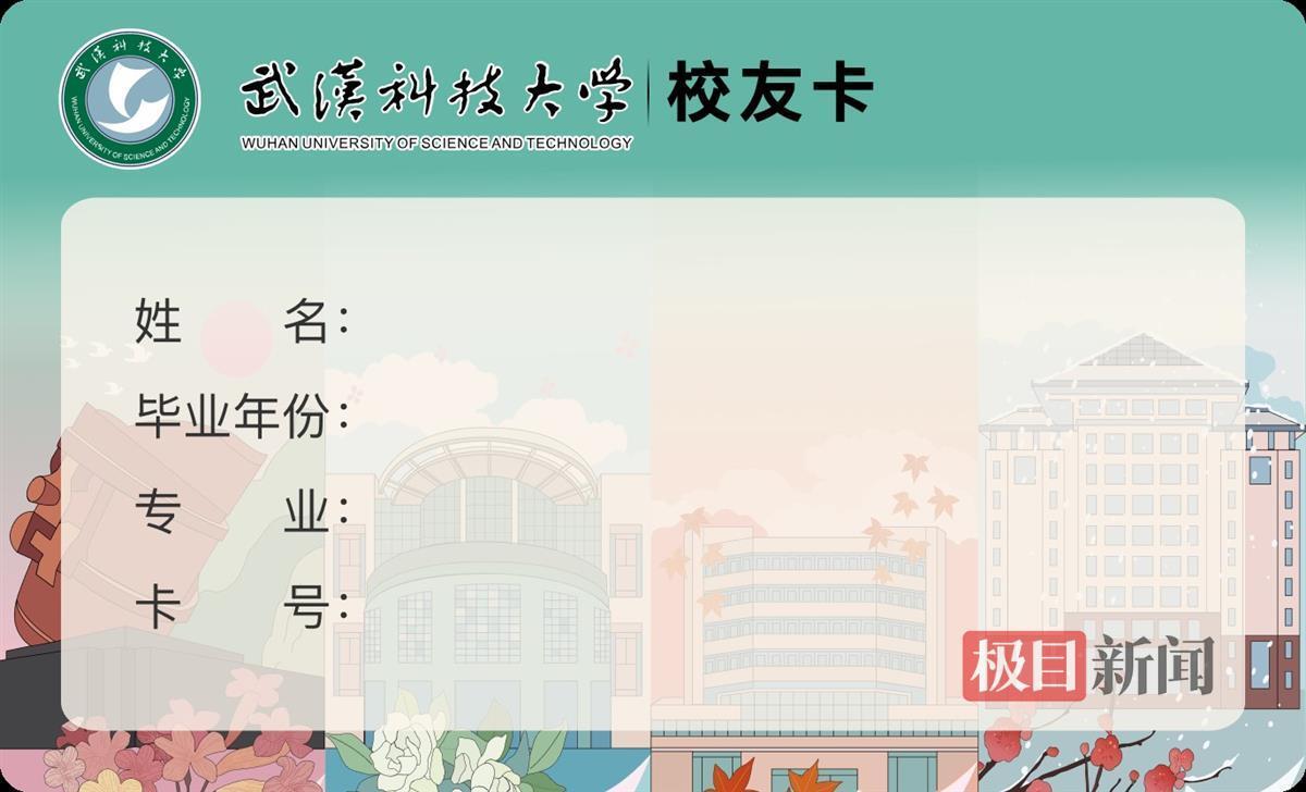校友卡卡面印有姓名、毕业年份、卡号、学院,封面以插画的形式描绘学校,特意选取了彰显该校特色的“铁水包、北园食堂、图书馆以及恒大楼”四个标志性建筑,配合了四个不同的季节变化,呈现出武科大一年四季的风景特色面貌。刘俊杰表示,希望这张校友卡能带给校友们学校的熟悉感和亲切感。