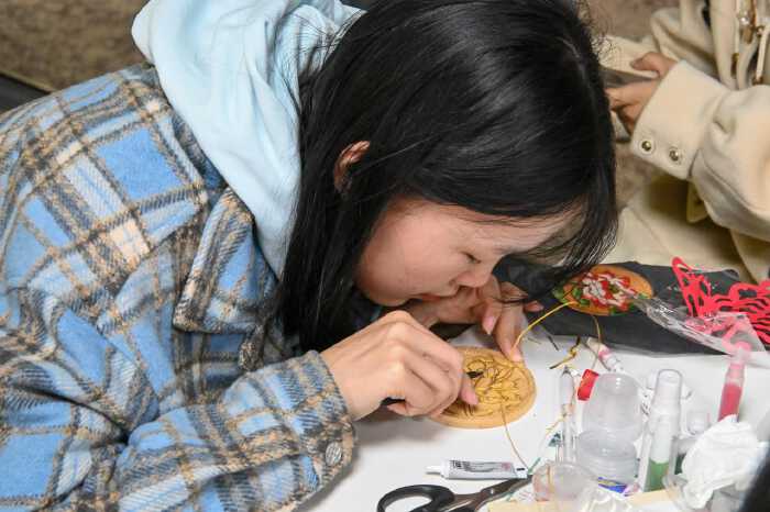 “走,一起去学生社区体验非遗文化!”11月12日,js33333线路登录在南园“一站式”学生社区举办“非遗学园”活动,学生们纷纷前往体验糖画、景泰蓝掐丝珐琅工艺画的制作和剪纸技艺,共同参与了一场非遗文化体验盛宴。