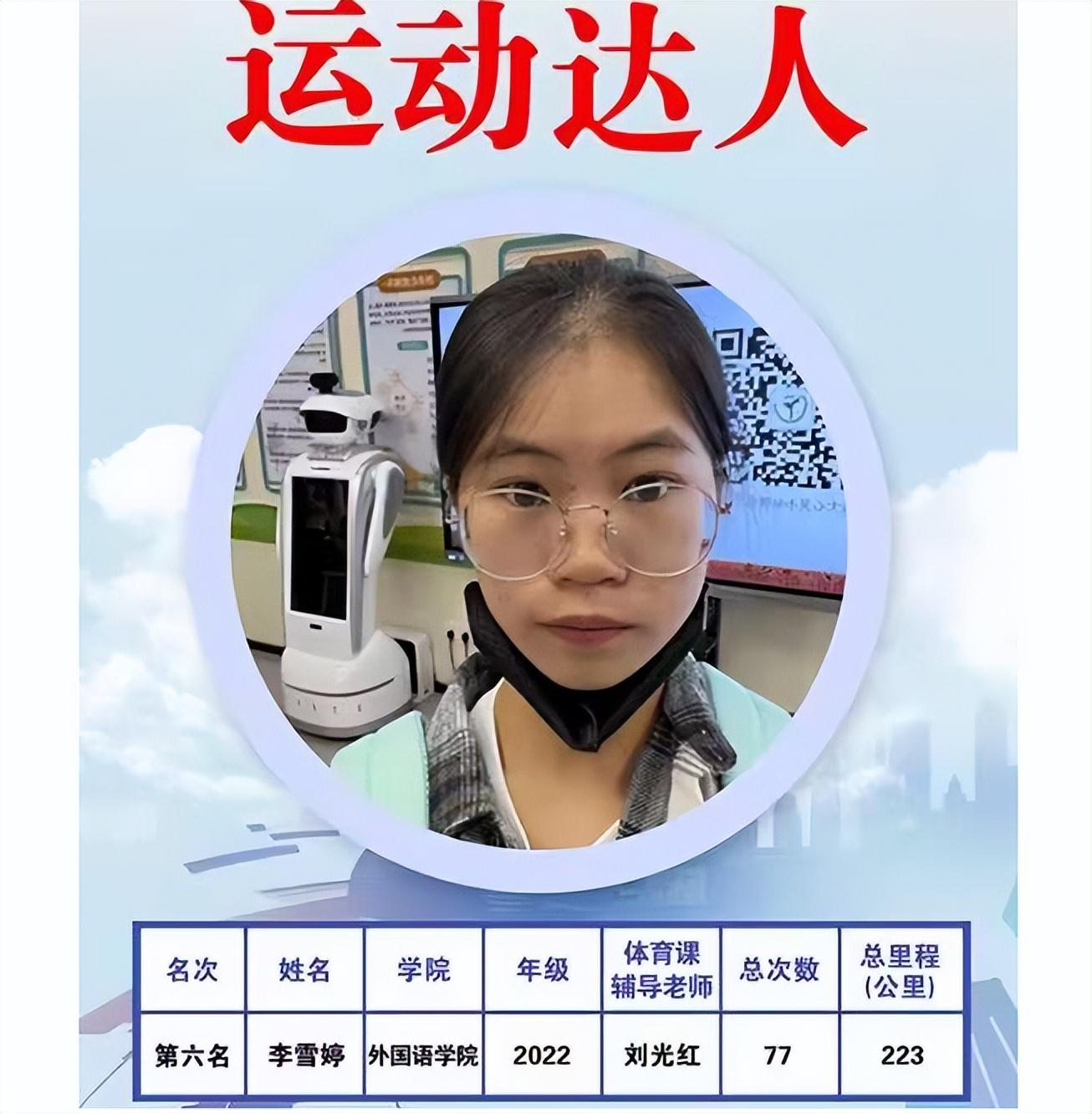 巾帼不让须眉,外国语学院大二学生李雪婷是唯一上榜的女生,跑步总次数达77次。她告诉记者:“我因学习竞赛等方面的失利而感到懊恼,想以此锻炼毅力,证明自己也可以做得很好。每次坚持跑完3km,能宣泄失望、焦虑等负面情绪,放松心理压力。”李雪婷拿着“运动达人”荣誉证书,高兴地说:“这是学校对我的肯定,也是我对自己的肯定。”