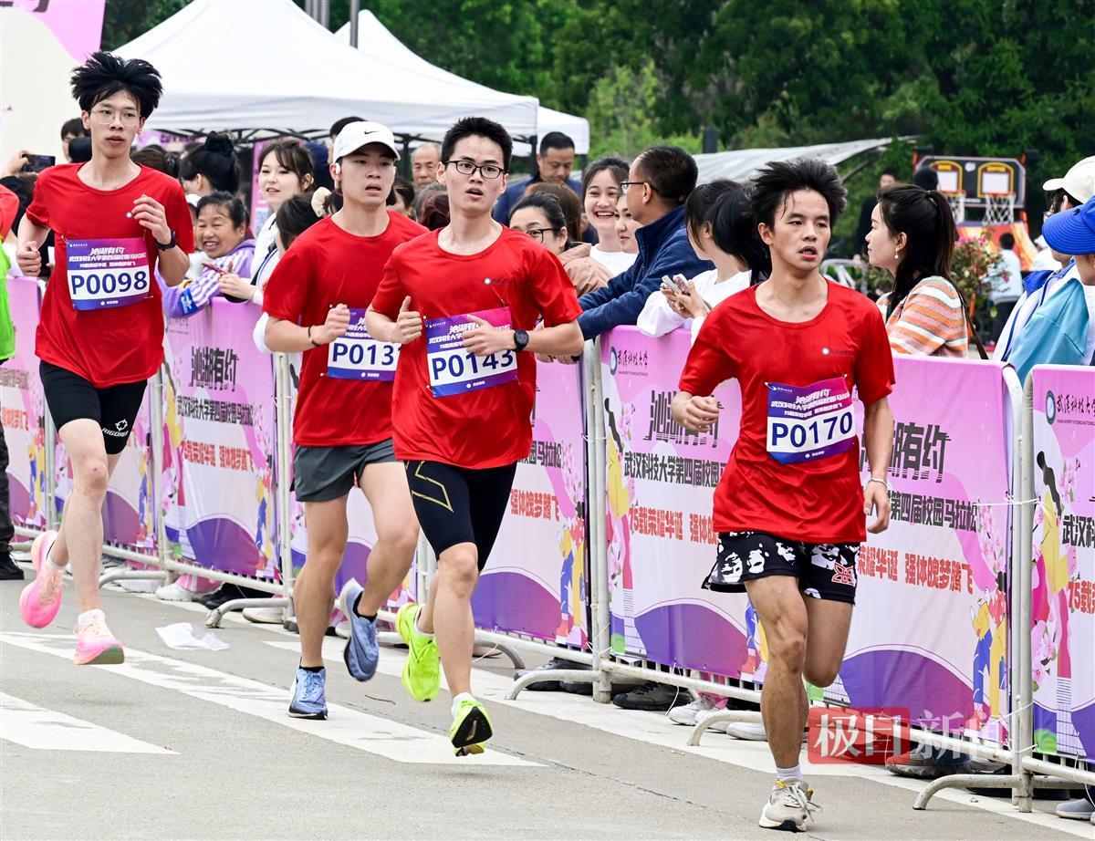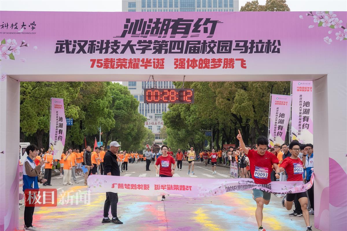 该校机械学院2022级学生刘瑞龙首个冲过终点线,获得了男子精英组冠军。他曾连续两年参加武汉马拉松,平均每天跑步5-10公里,刘瑞龙一边喘气一边笑着说:“跑步是爱好,也是习惯。跑步时那种自由和解压的感觉很让我‘上瘾’。”两年多来,他通过跑步从190斤减重到140斤。