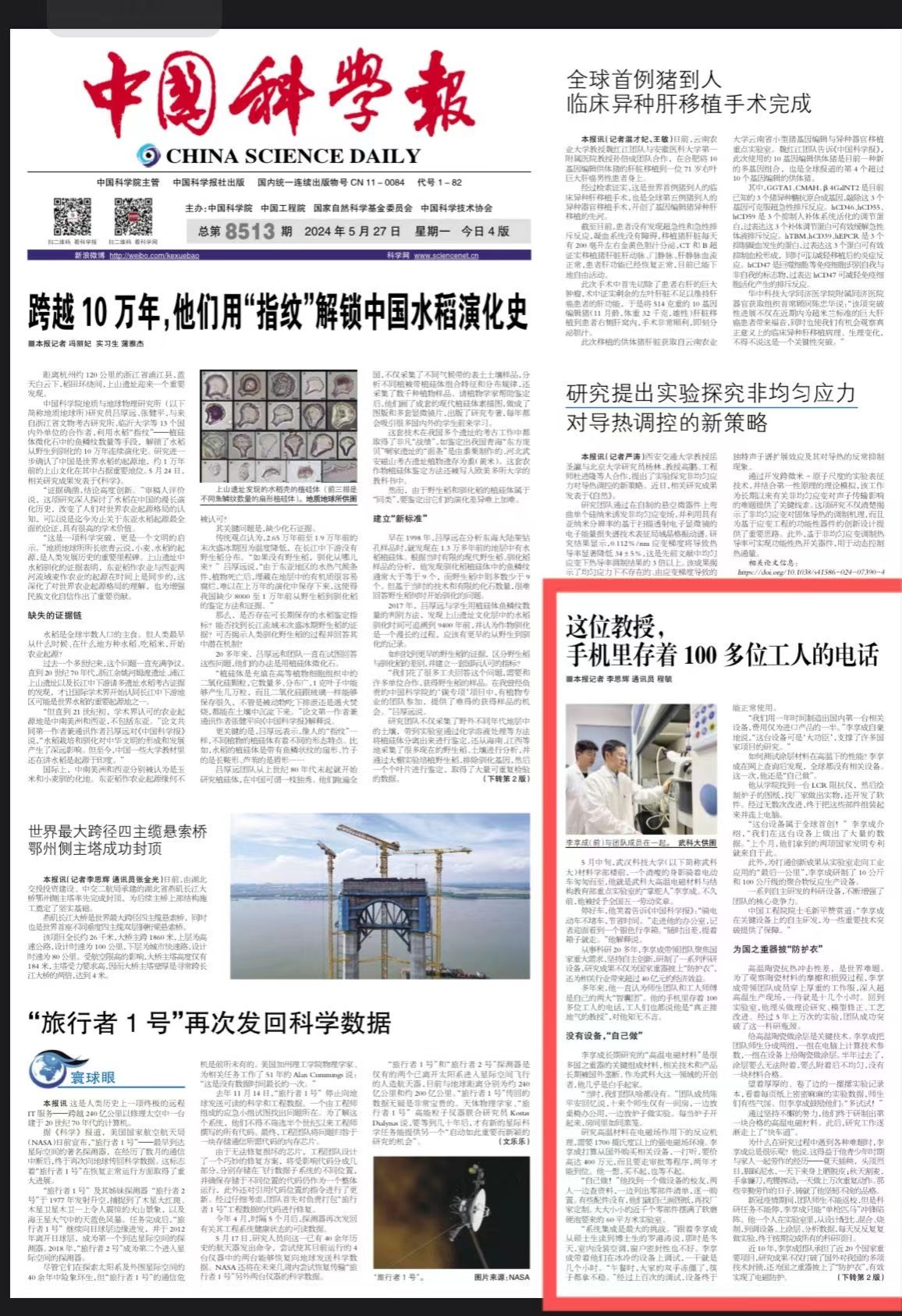 多年来,他一直认为师生团队和工人师傅是自己的两大“智囊团”。他的手机里存着100多位工人的电话,工人们也都说他是“真正接地气的教授”,对他知无不言。
