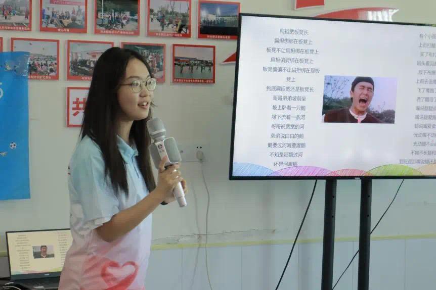 “声韵童年”课堂上,“爱之星”支教团成员王子怡用湖北荆门方言开场,展示方言交流的障碍,带领小朋友们说好普通话。民族主题教育课堂上,支教团成员谢秋迪由石榴籽引出民族团结,向小朋友们具体介绍了中国少数民族的基本情况。“五十六个民族凝聚在一起就是中华民族共同体!”小朋友纷纷说道。