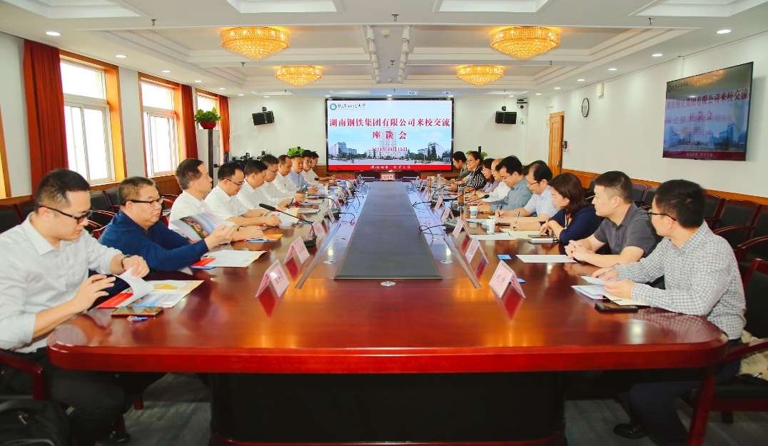 在座谈交流环节,双方共同观看了湖南钢铁宣传片和学校校情宣传片,就进一步深化合作展开了深入探讨。